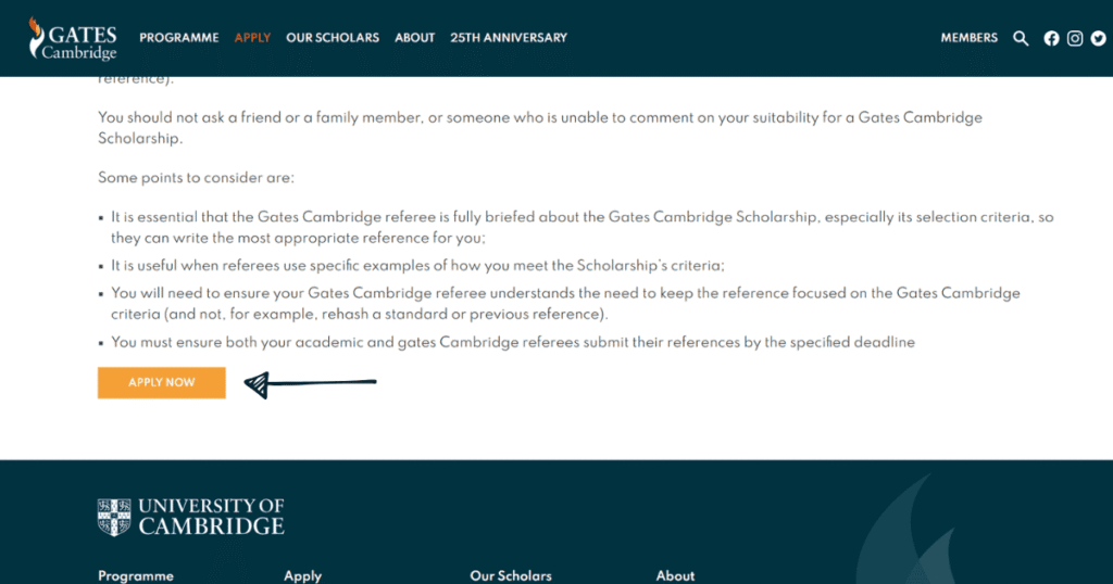 Visit the above link to start your application for the Gates Cambridge Scholarship via the University of Cambridge Graduate Application Portal.